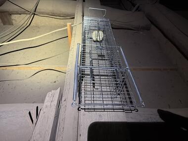 天井裏に捕獲カゴを入れて、侵入口の閉鎖や天井裏の清掃消毒などを行いました。