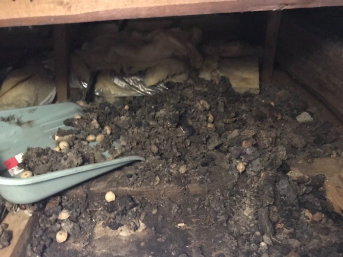 2021年12月24日(金) ハクビシン ハクビシンが天井裏に住み着くと 今は誰も住んでいないご実家に知らぬ間にハクビシンが住み着き、天井裏に大量の糞が蓄積されていました。 短時間しか滞在しないとなかなかハクビシンが住み着いていることに気がつきません。 おそらく2年以上前から住み着いていたと思われます。 ハクビシンは日中は寝ていて、夕方から朝方まで外で活動するため、 物音も限られた時間にしかしないため、部屋の中からは天井にオシッコの染みができて初めて異変に気がつくことも多いです。 天井裏の異変に気がついたらお早めに無料調査・見積もりご依頼下さい。