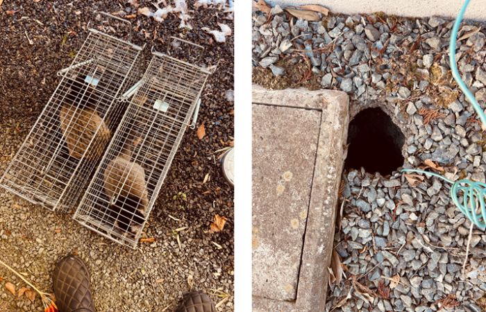 2022年02月09日(水) ハクビシン ハクビシン捕獲 天井裏に入り込んだハクビシンを捕獲しました。 2匹捕獲しましが、まだ他にもまだいました。 侵入口はこんな穴から床下を通って壁伝いに天井裏まで侵入していました。 とても器用な生物なのでいろいろな場所から侵入してしまいます。
