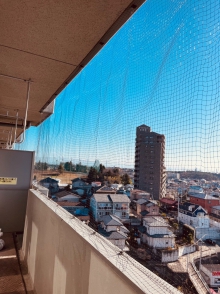 今回はベランダの糞の清掃消毒とバードネット設置を行わせていただきました。