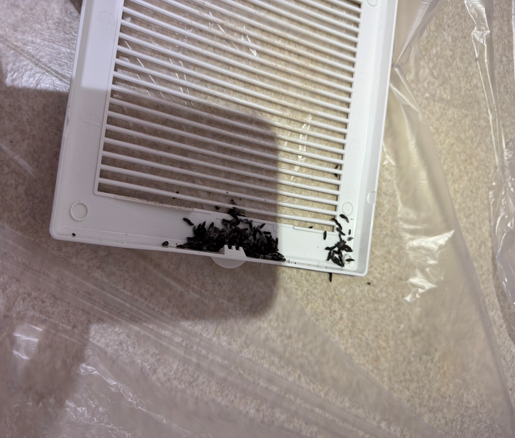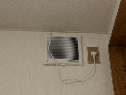 アパートによくある換気口からコウモリが侵入し、室内の換気扇部分から糞が落ちてきていました。