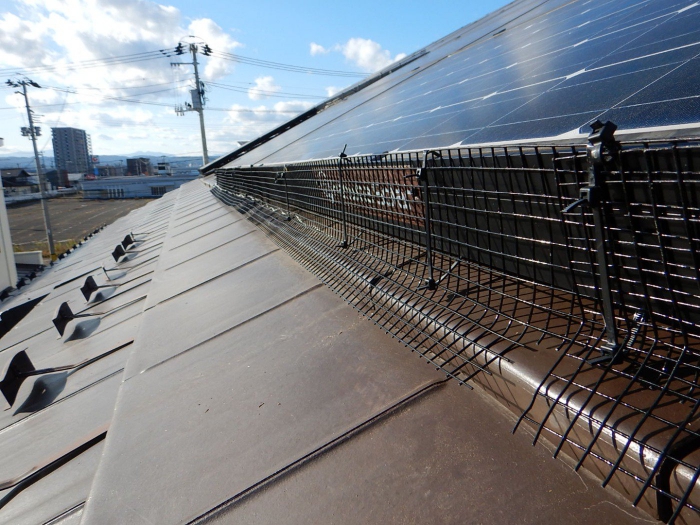 太陽光発電システムのソーラーパネルの隙間に鳥が巣を作ってしまい、