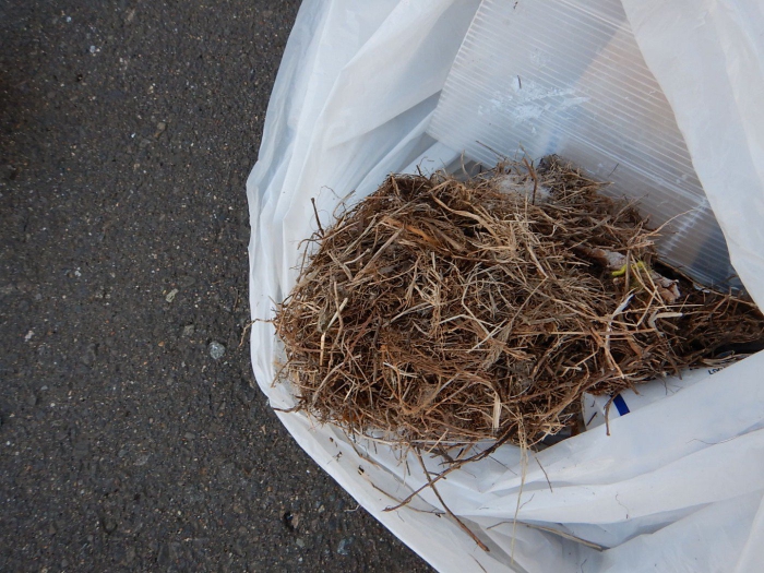 パネルの下にはたくさんの巣の材料が詰め込まれていました。