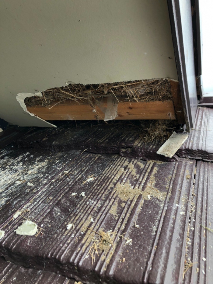 2022年10月05日(水) 鳥 スズメが天井裏に巣作り 屋根と軒の隙間からスズメが入り、巣を作っていました。 かなり大量の枯れ草を持ち込んでいました。 天井裏からカサコソと物音が気になるようでしたら、 早めに調査をご依頼ください。 何の動物か分からなくても調査させていただきます。 調査・お見積りは無料で行わせていただきます。